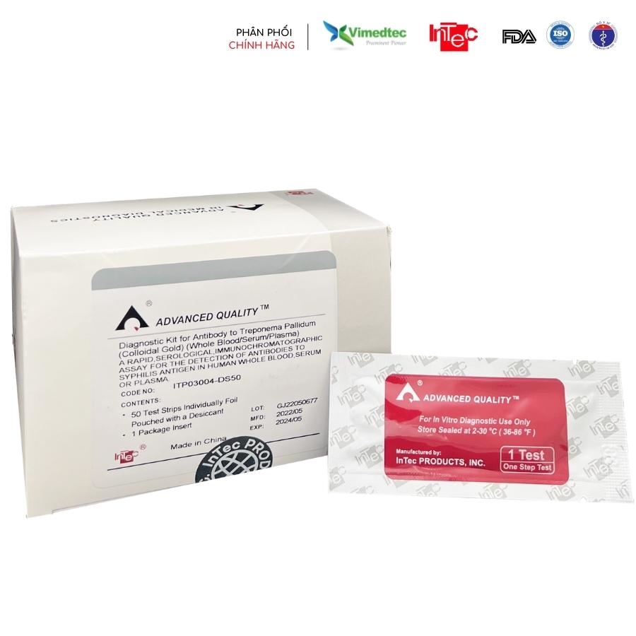 Kit thử Diagnostic Kit for Antibody to Treponema Pallidum ( Colloidal Gold) là xét nghiệm miễn dịch sắc ký, sử dụng để phát hiện sự có mặt của kháng thể Syphilis trong máu toàn phần, huyết thanh hoặc huyết tương của người. Kit thử cho kết quả định tính, đọc bằng mắt thường và sử dụng cho mục đích chuyên nghiệp. Xét nghiệm được sử dụng để: sàng lọc bệnh lây truyền đường tình dục (STD) trong nhóm người có nguy cơ cao, kiểm tra sức khoẻ định kỳ và sàng lọc tai ngân hàng máu.CÁC ĐẶC TÍNH