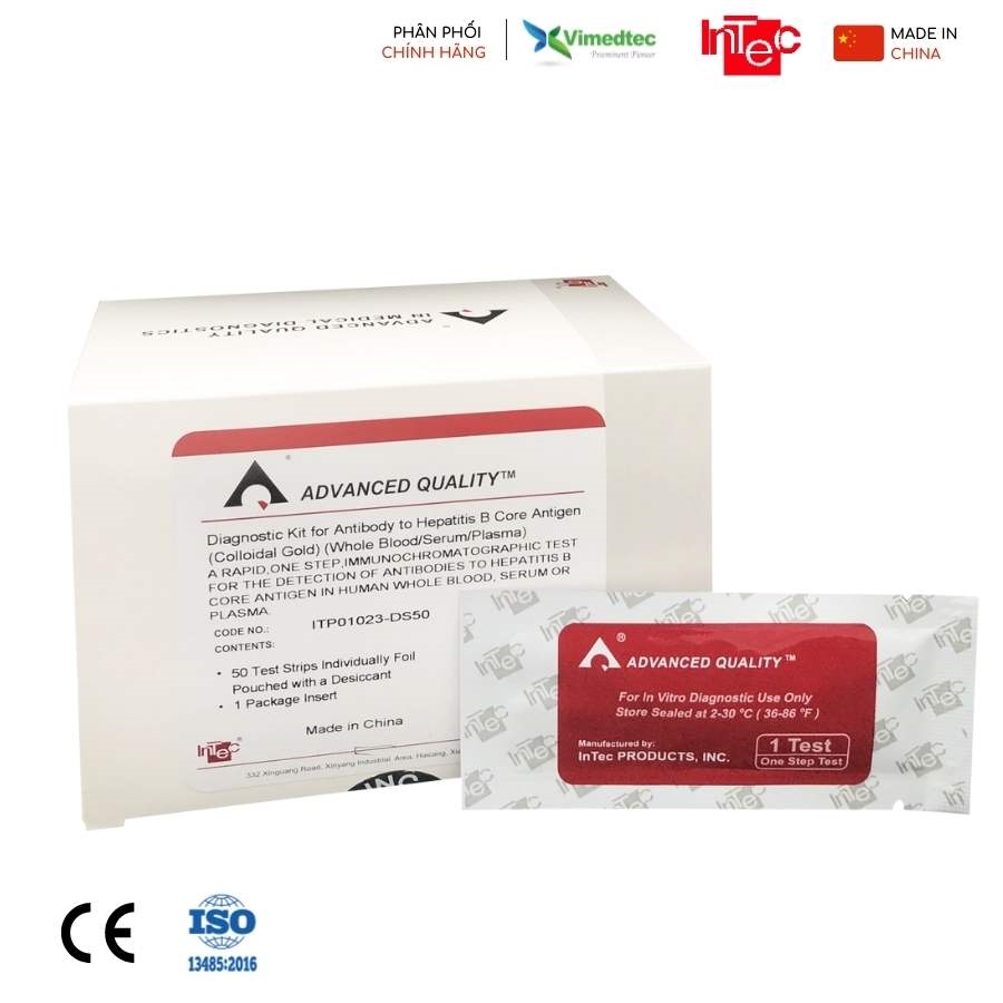 Bộ kit thử Diagnostic Kit for Antibody to Heoatitis B Core Antigen ( Colloidal Gold ) là xét nghiệm miễn dịch sắc ký, sử dụng để định tính phát hiện sự có mặt của HBcAb trong máu hoàn toàn, huyết thanh hoặc huyết tương của người. Được sử dụng trong sàng lọc máu và hỗ trợ chuẩn đoán virus viêm gan B. Kit thử cho kết quả định tính, đọc bằng mắt thường và sử dụng cho mục đích chuyên nghiệp.