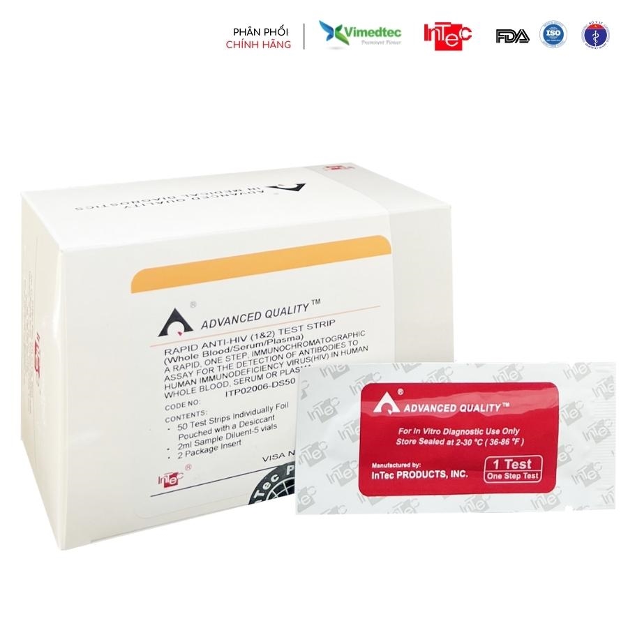 Test Xét nghiệm nhanh InTec One Step Anti-HIV (1 & 2) xét nghiệm sắc ký miễn dịch nhanh được tăng cường bằng vàng keo (colloidal gold) phát hiện định tính kháng thể đối với Virus có khả năng miễn dịch (HIV) ở người từ mẫu máu toàn phần (tĩnh mạch và thanh quản), bệnh phẩm huyết thanh hoặc huyết tương.